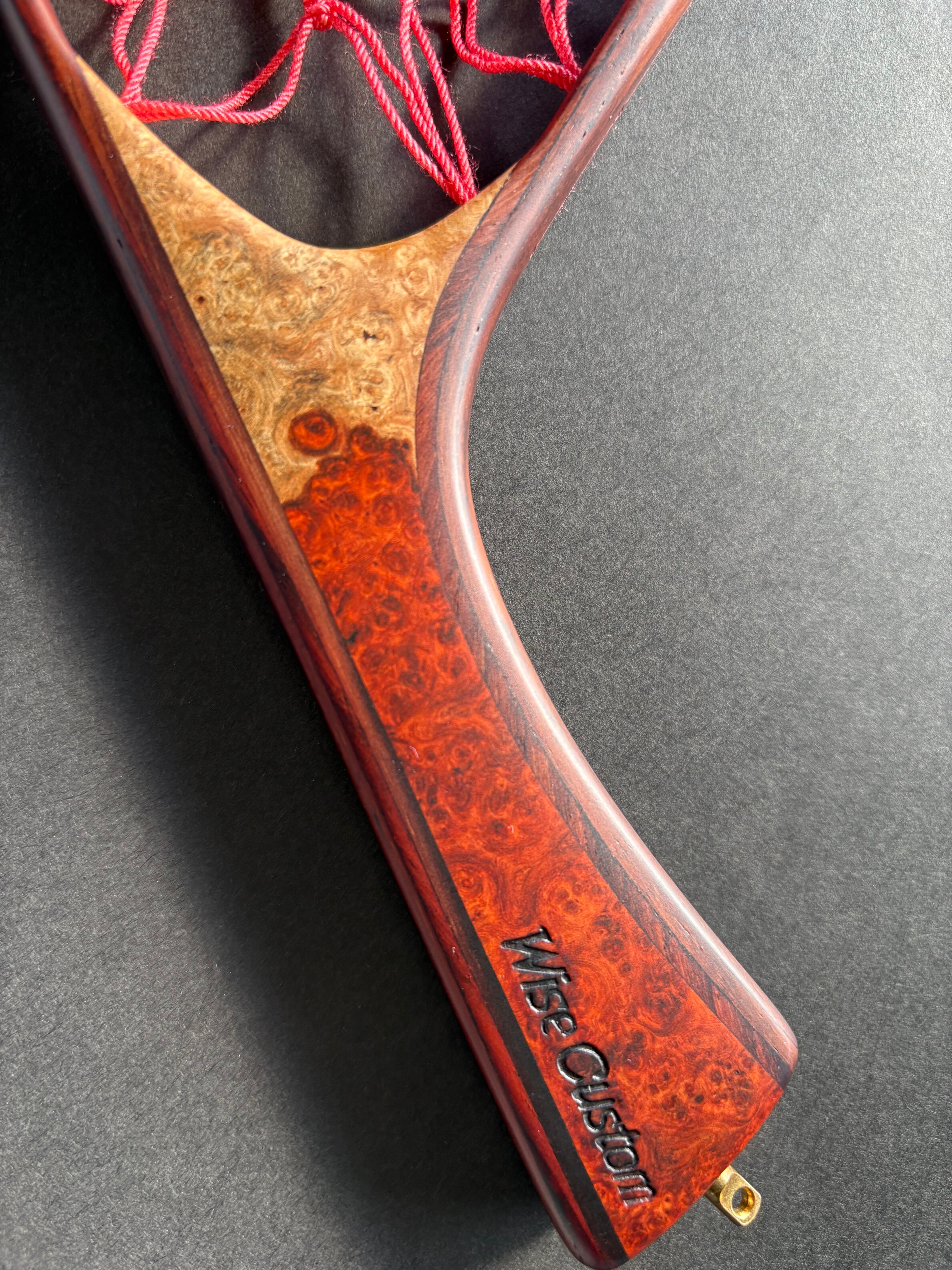 グリップには、希少価値の高い“特上グレード”のアンボイナ花梨瘤材を使用。瘤ならではの複雑で美しい杢が、所有する喜びを引き立てます。