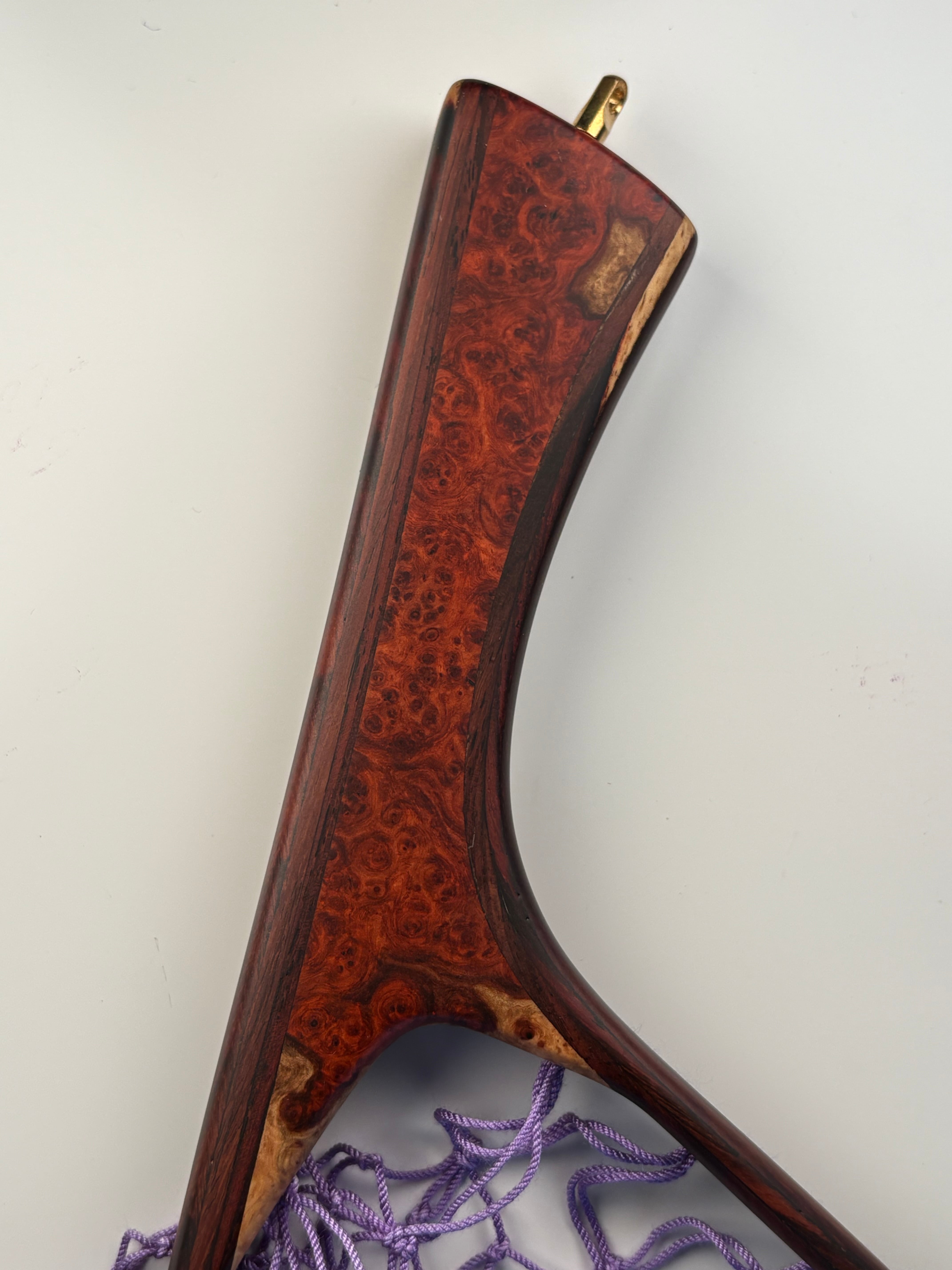 グリップには、希少価値の高い“特上グレード”のアンボイナ花梨瘤材を使用。瘤ならではの複雑で美しい杢が、所有する喜びを引き立てます。