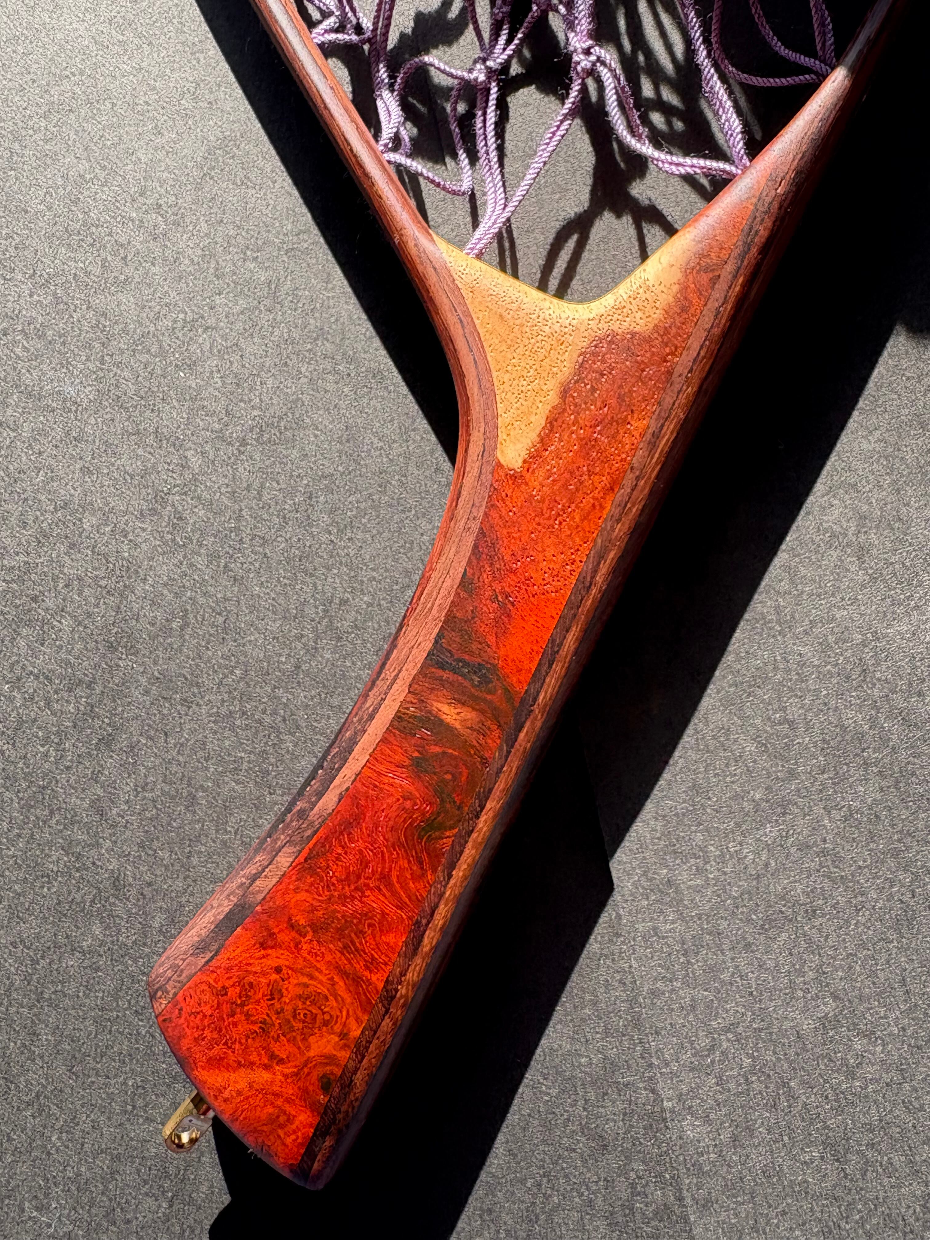 グリップには、希少価値の高い“特上グレード”のアンボイナ花梨瘤材を使用。瘤ならではの複雑で美しい杢が、所有する喜びを引き立てます。