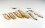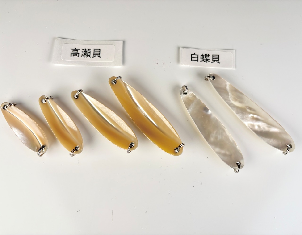 高瀬貝を使用。厚みのある貝材を厳選し、キャスティングに必要な十分な飛距離を実現しています。