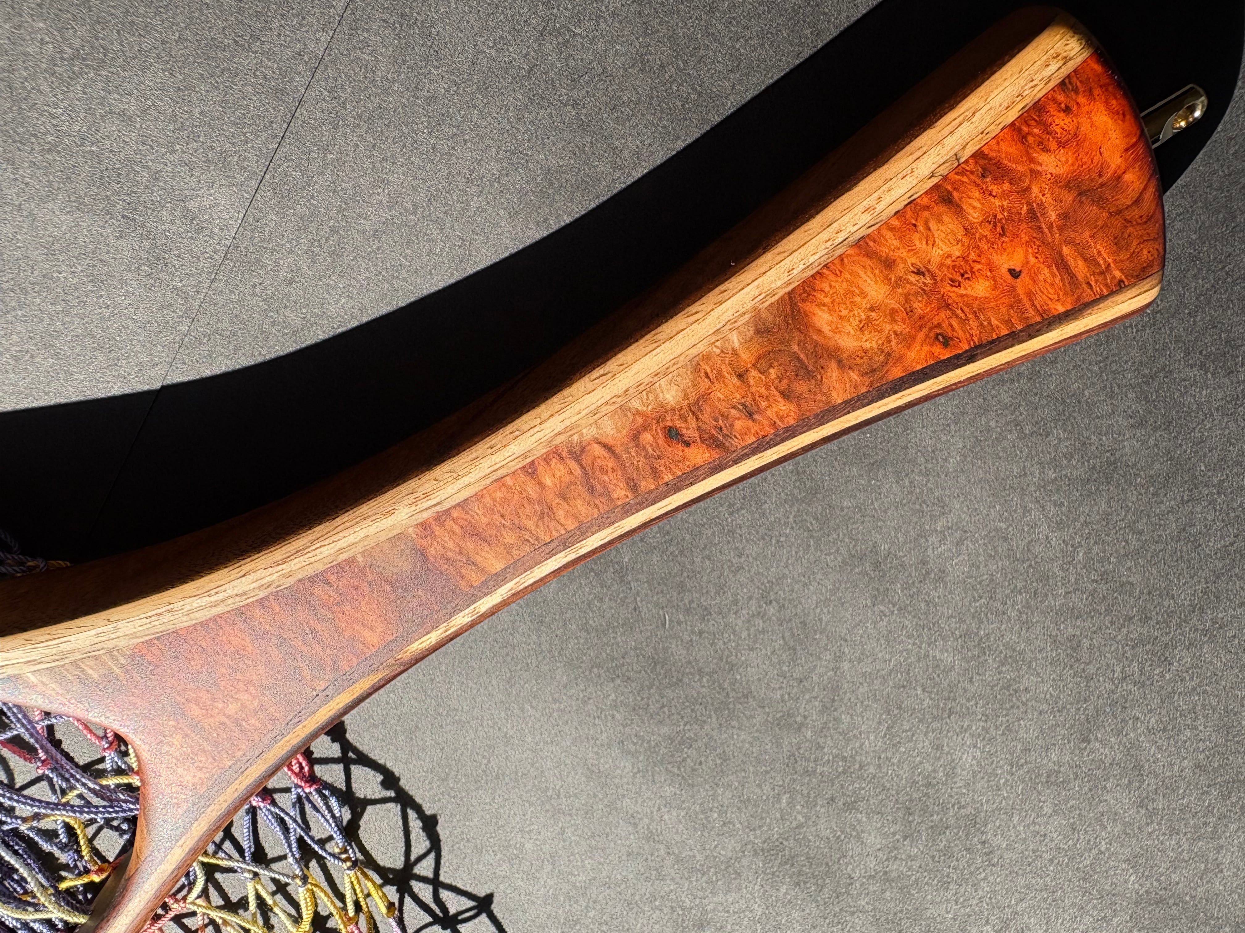 グリップには、希少価値の高い“特上グレード”のアンボイナ花梨瘤材を使用。瘤ならではの複雑で美しい杢が、所有する喜びを引き立てます。