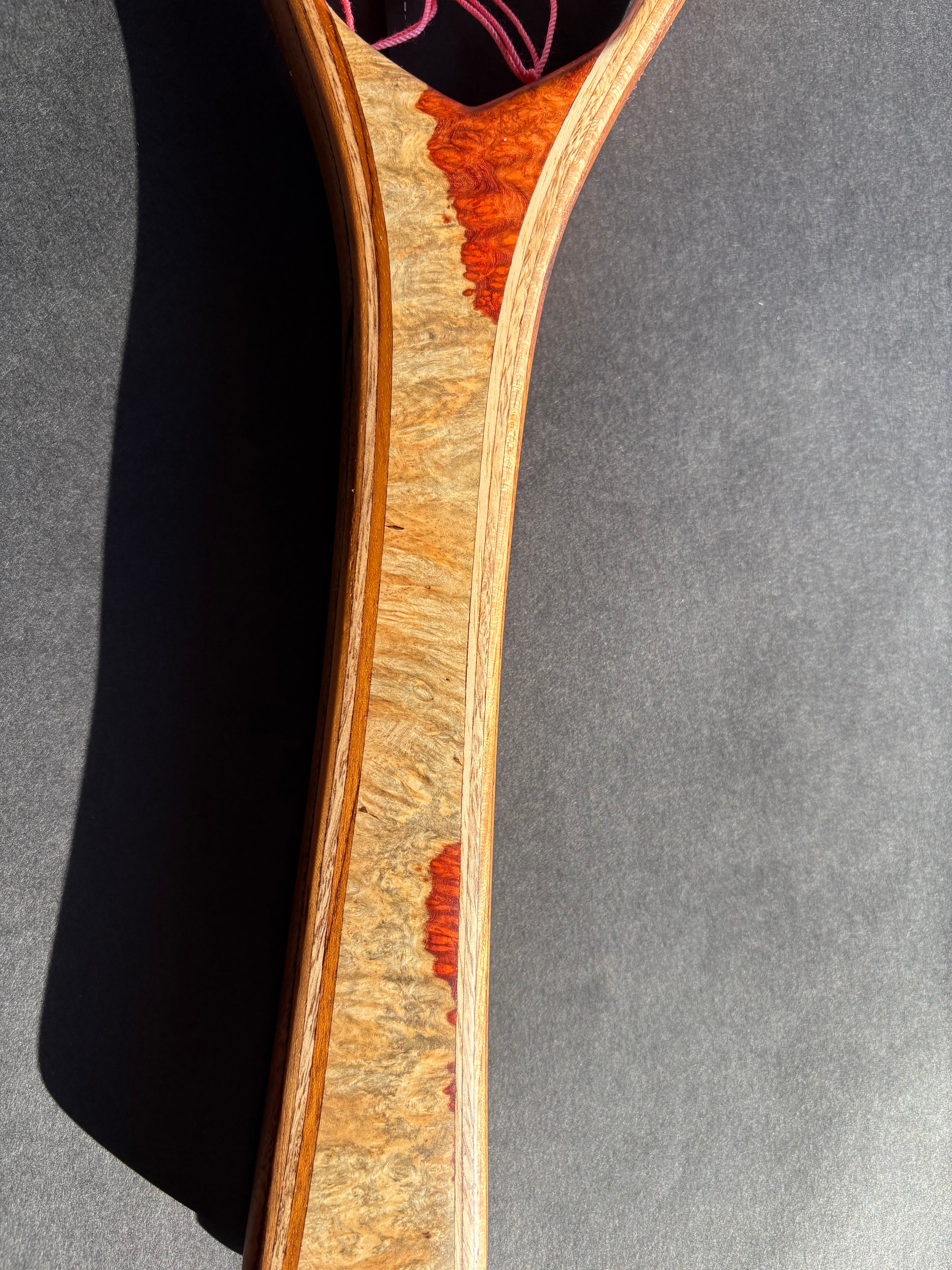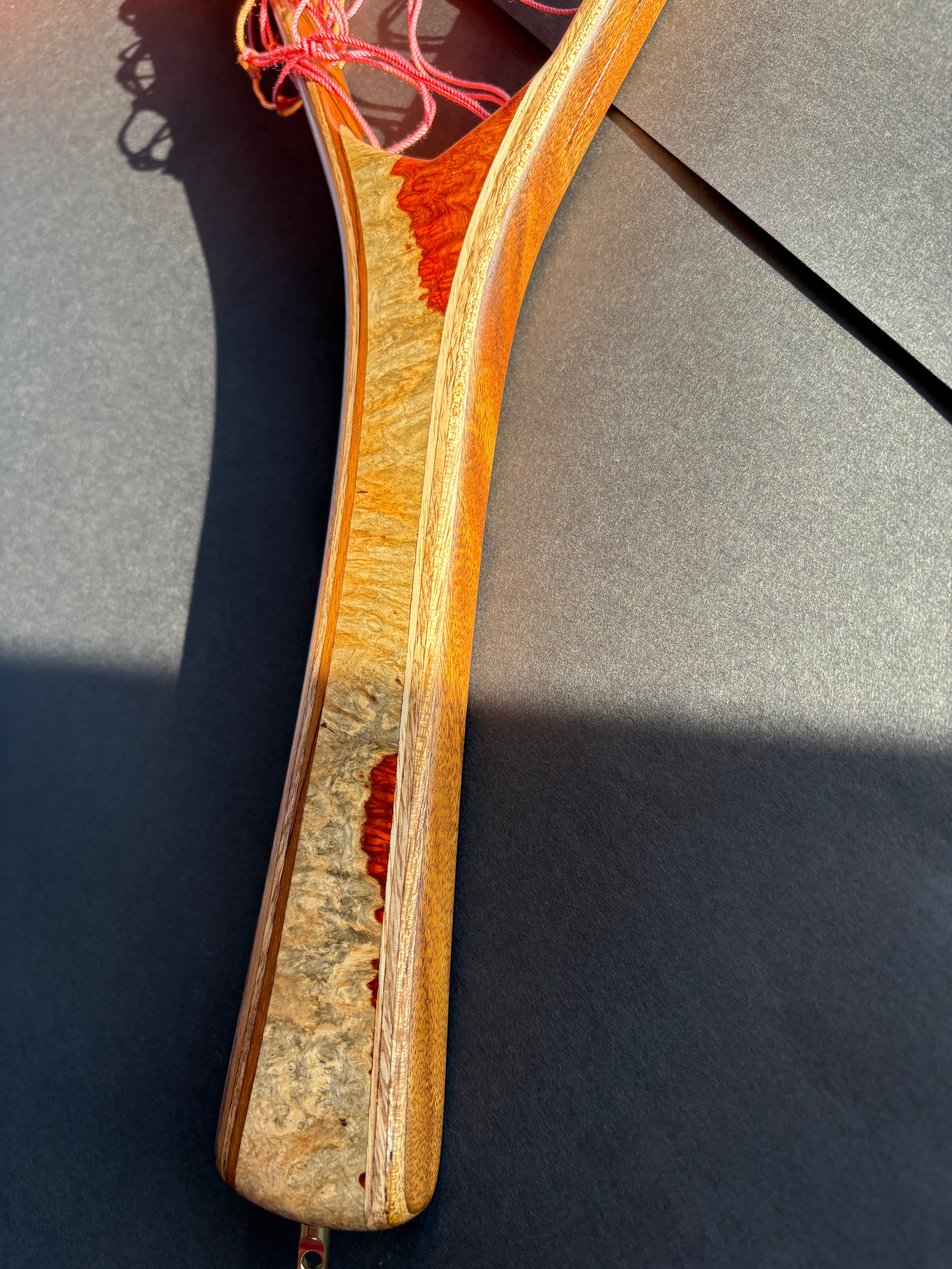 グリップには、希少価値の高い“特上グレード”のアンボイナ花梨瘤材を使用。瘤ならではの複雑で美しい杢が、所有する喜びを引き立てます。