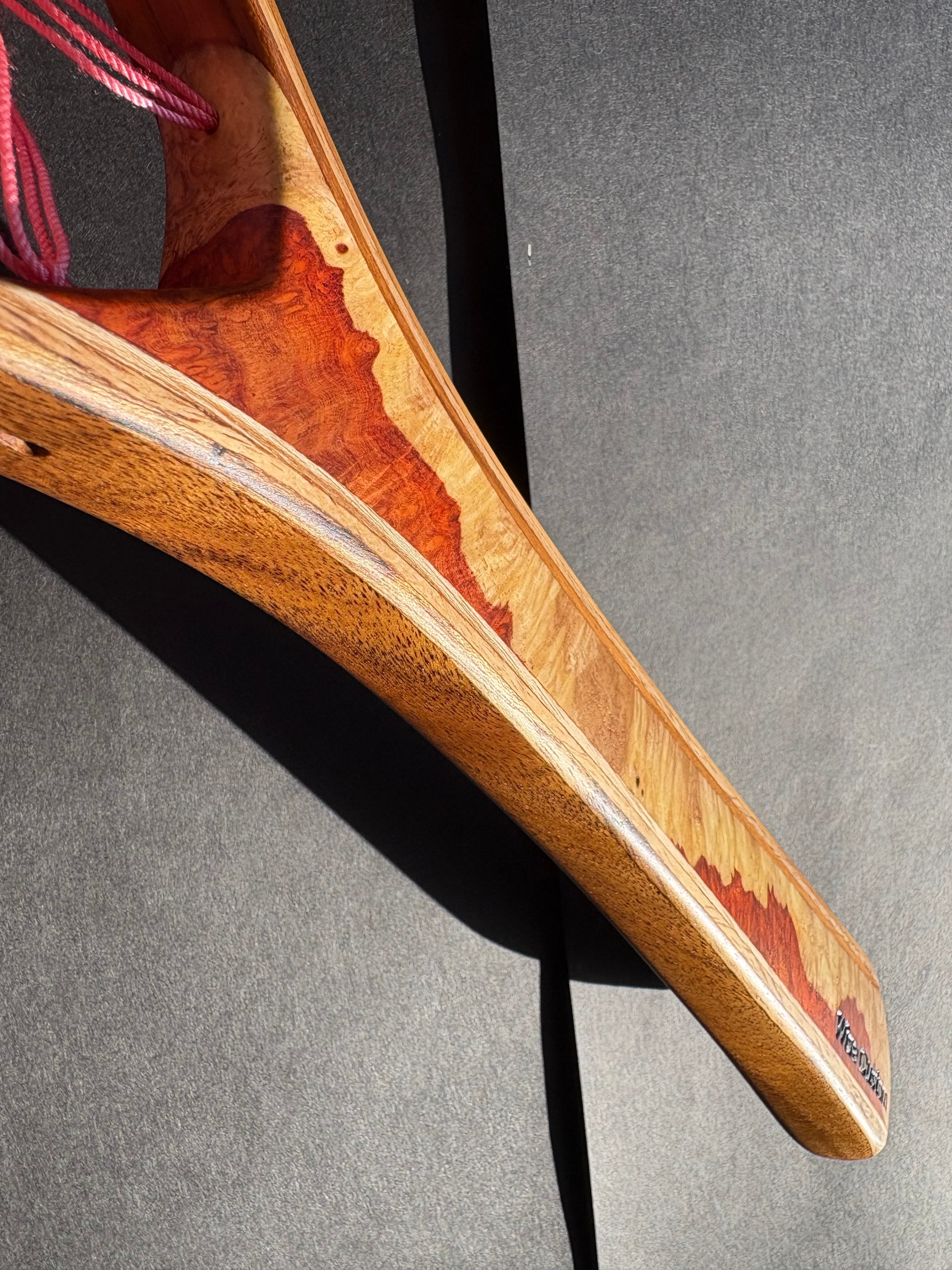 フレームには外からアカシア、チーク、ローズウッド、チークと四層に重ね、強度と美しさを両立させました。