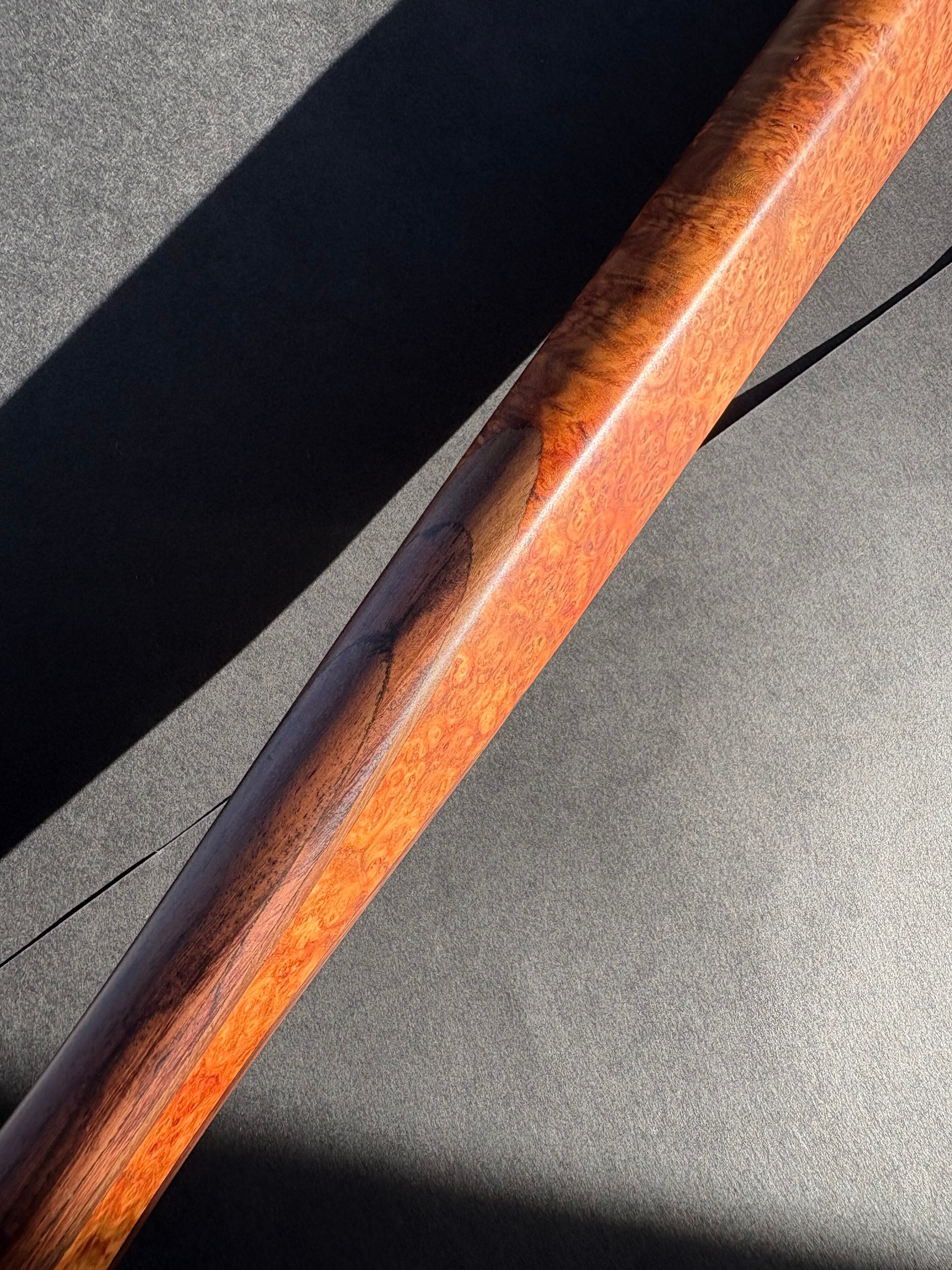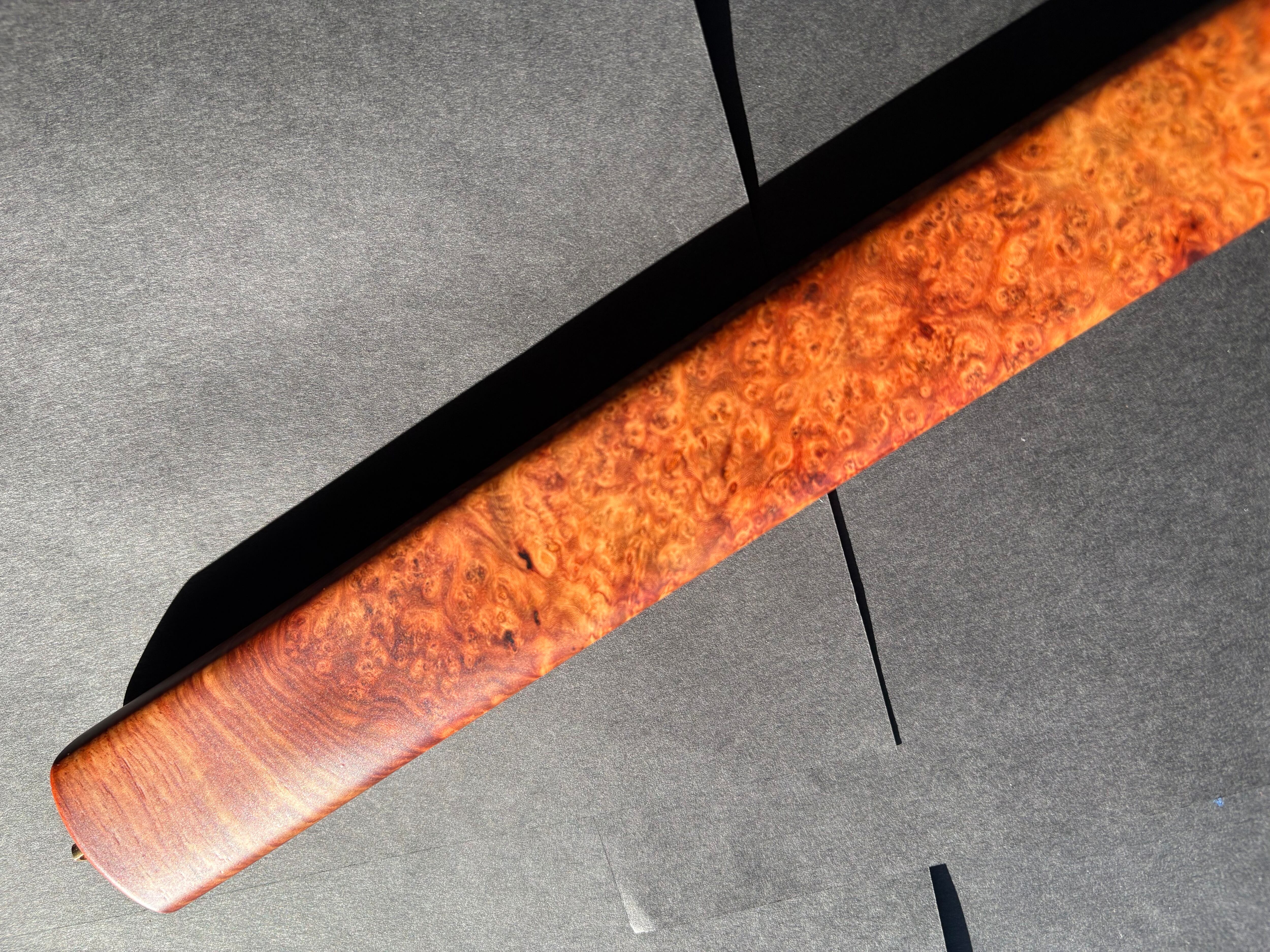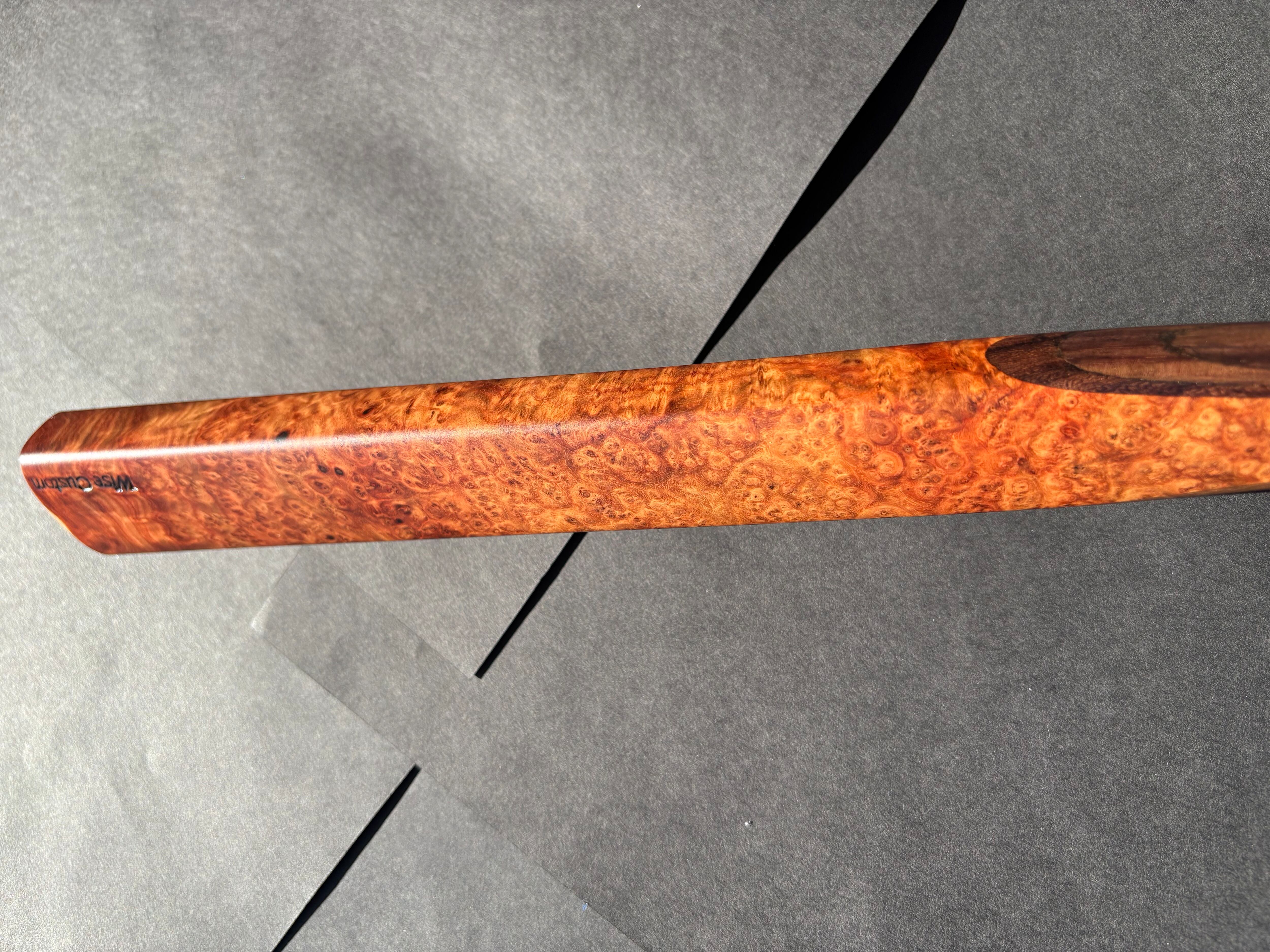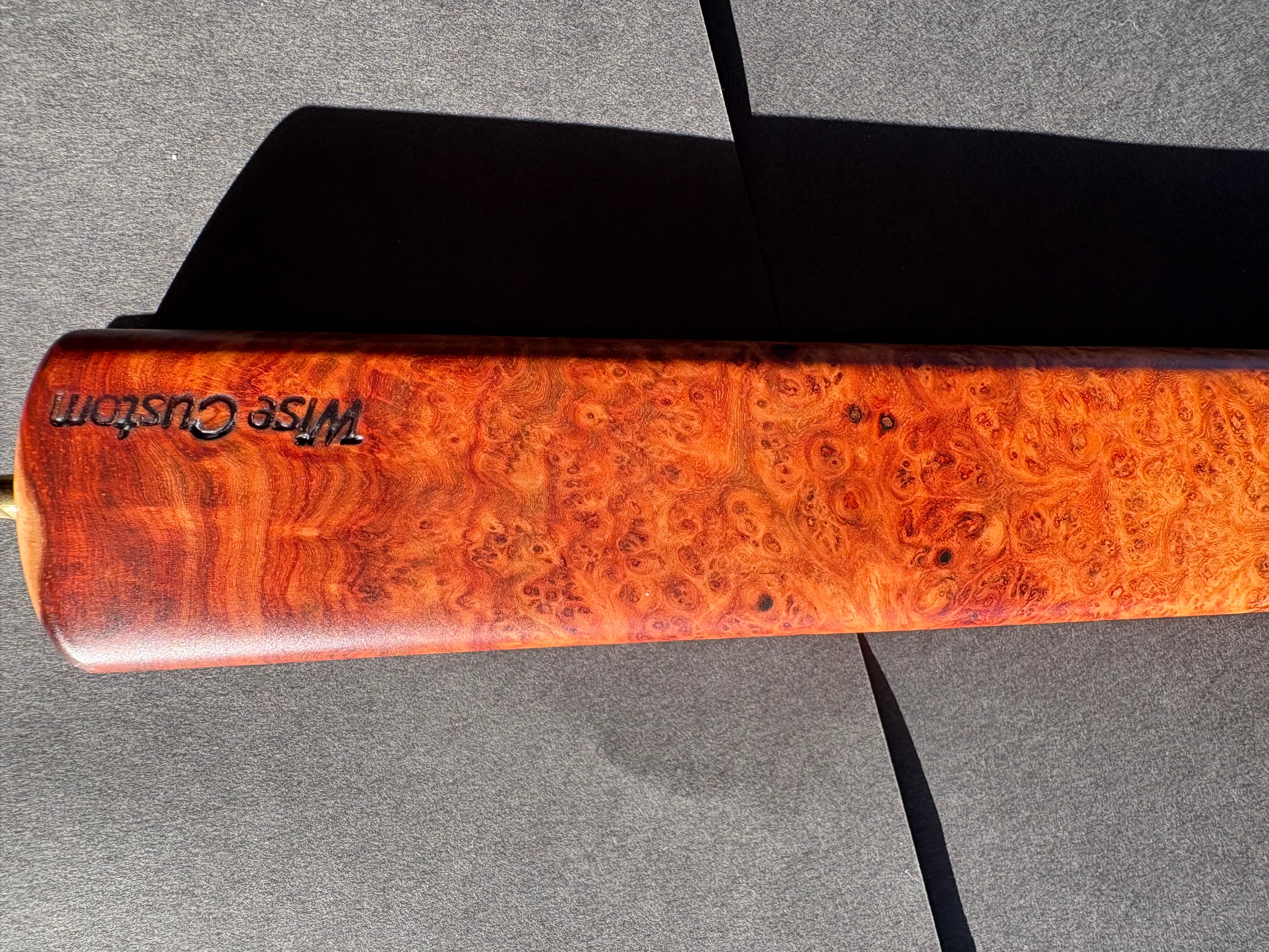 グリップには、希少価値の高い“特上グレード”のアンボイナ花梨瘤材を使用。瘤ならではの複雑で美しい杢が、所有する喜びを引き立てます。