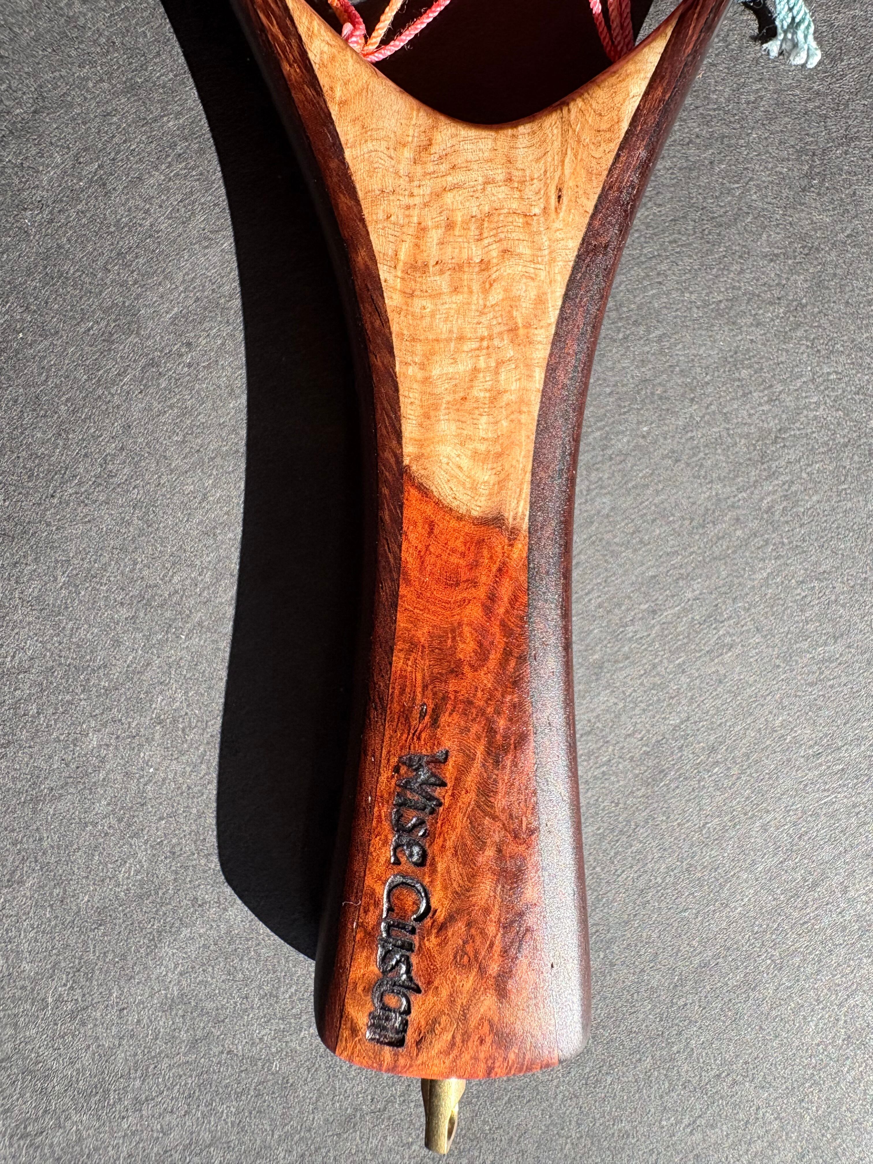 グリップ には、希少価値の高い“特上グレード”のアンボイナ花梨瘤材を使用。瘤ならではの複雑で美しい杢が、所有する喜びを引き立てます。