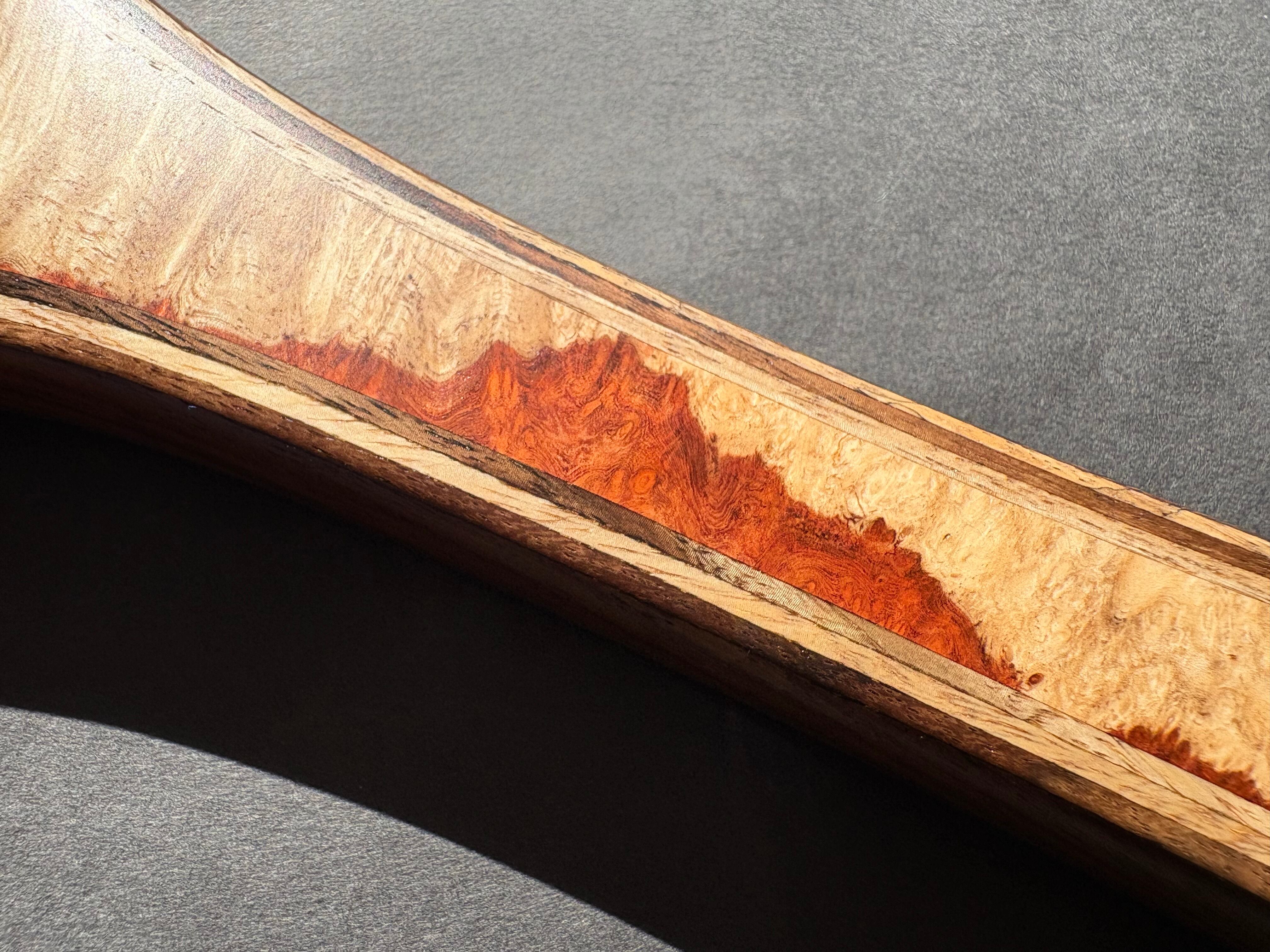 グリップには、希少価値の高い“特上グレード”のアンボイナ花梨瘤材を使用。瘤ならではの複雑で美しい杢が、所有する喜びを引き立てます。