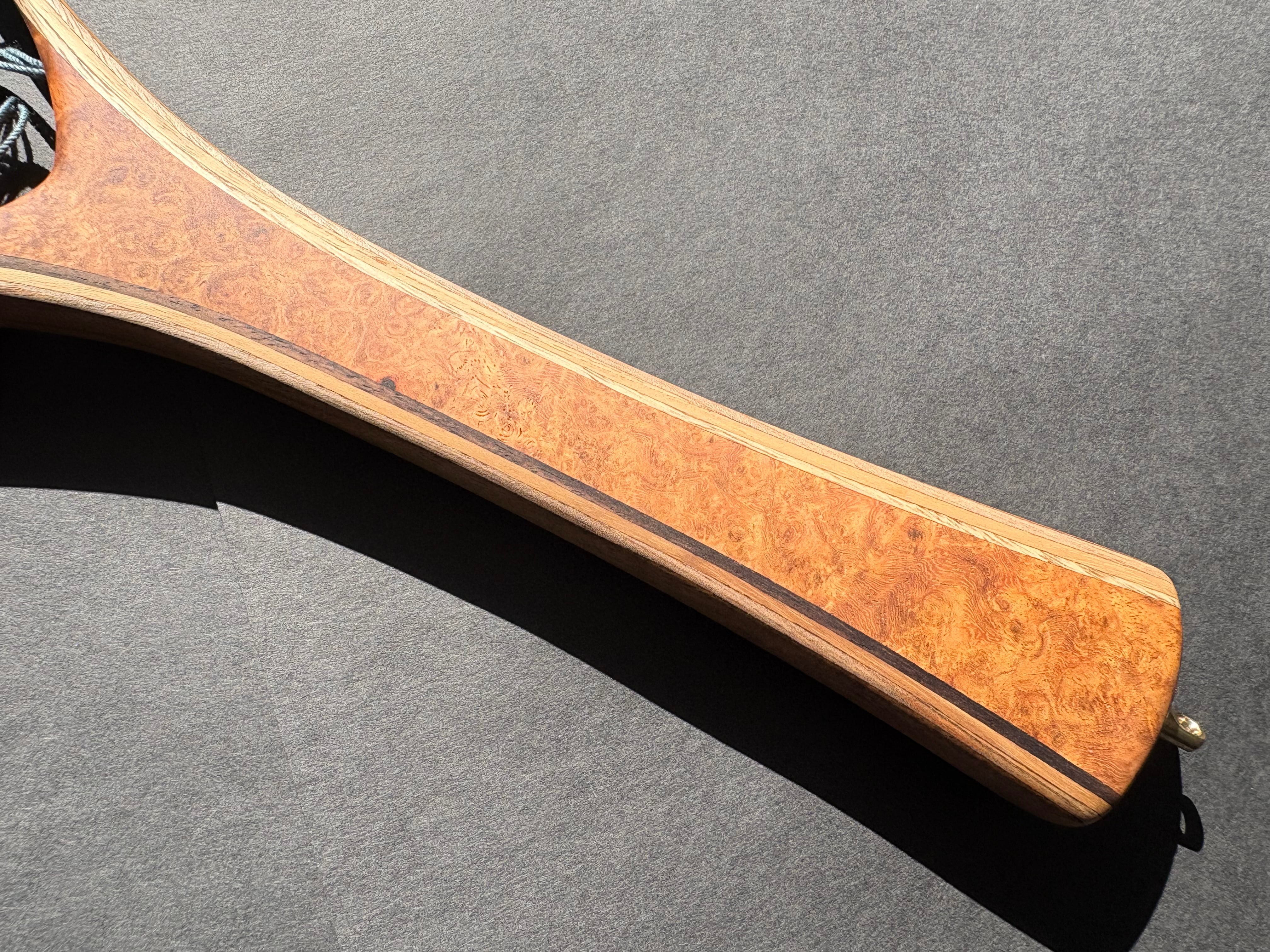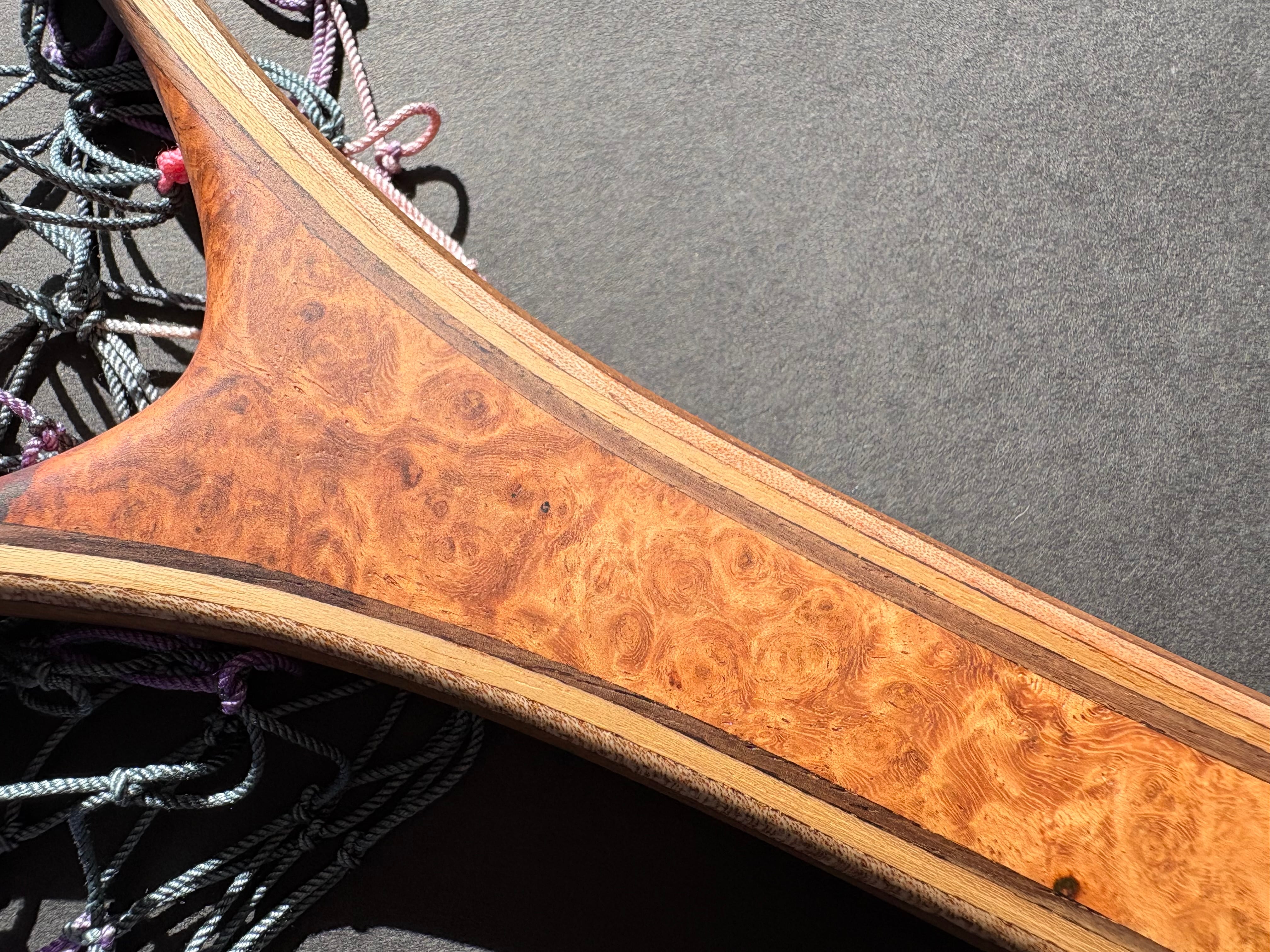 グリップには、希少価値の高い“特上グレード”のアンボイナ花梨瘤材を使用。瘤ならではの複雑で美しい杢が、所有する喜びを引き立てます。