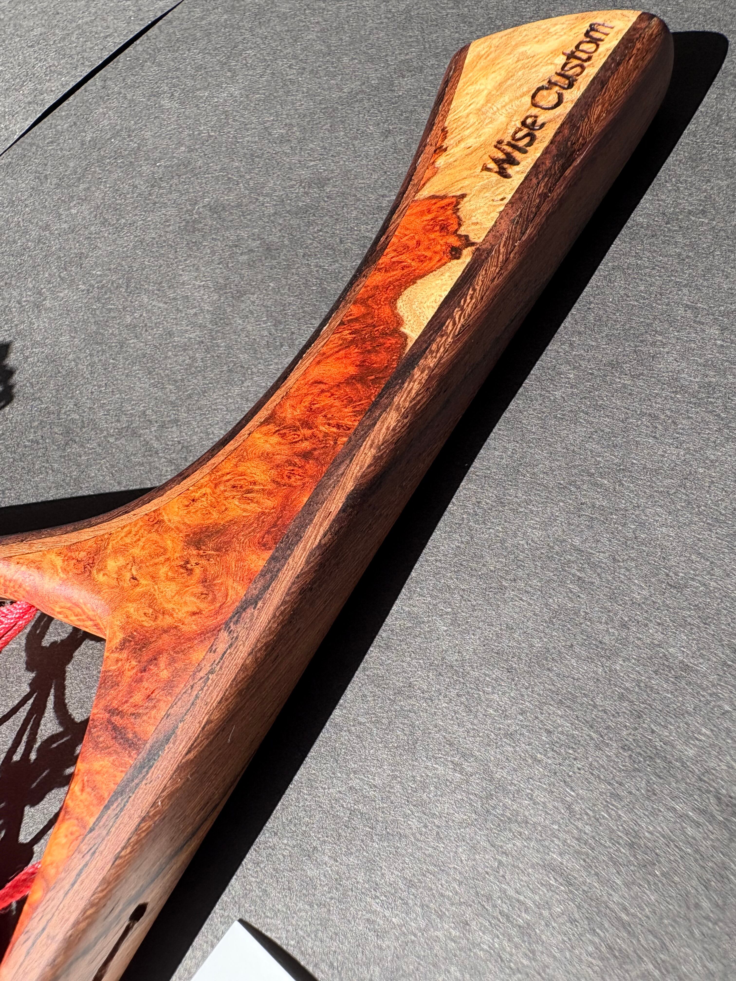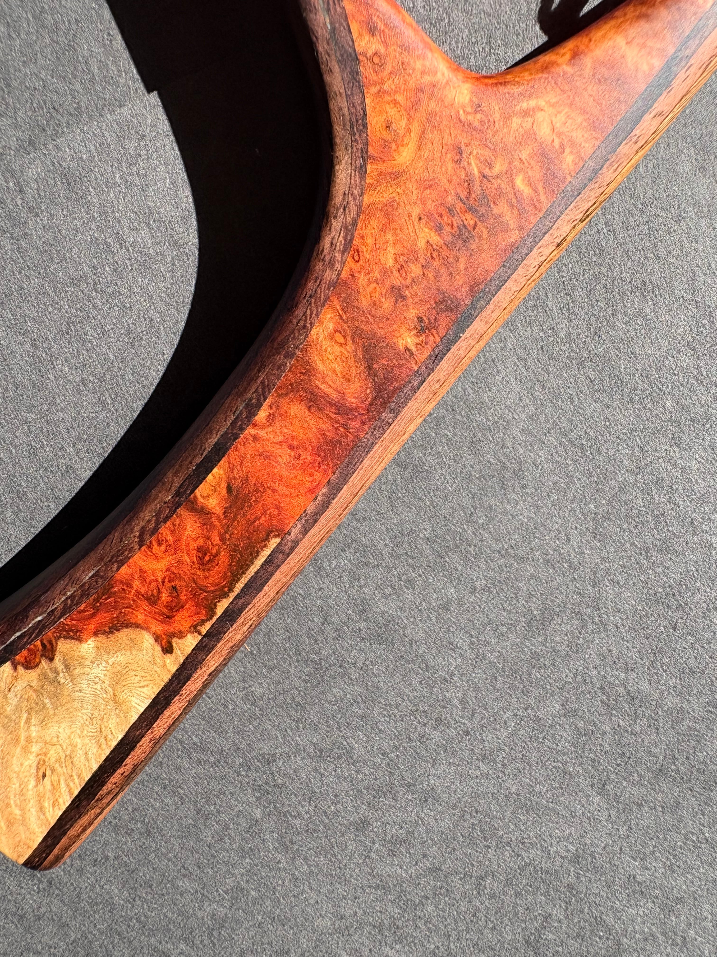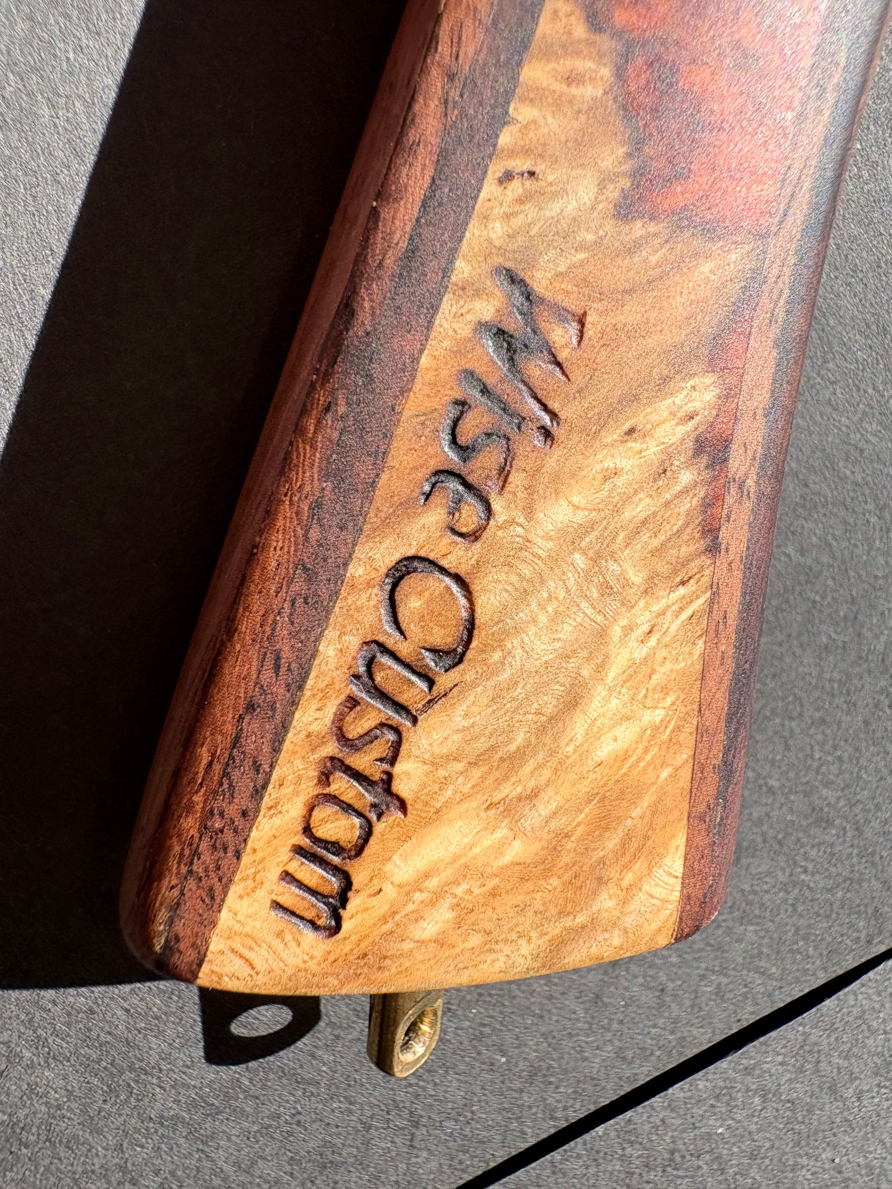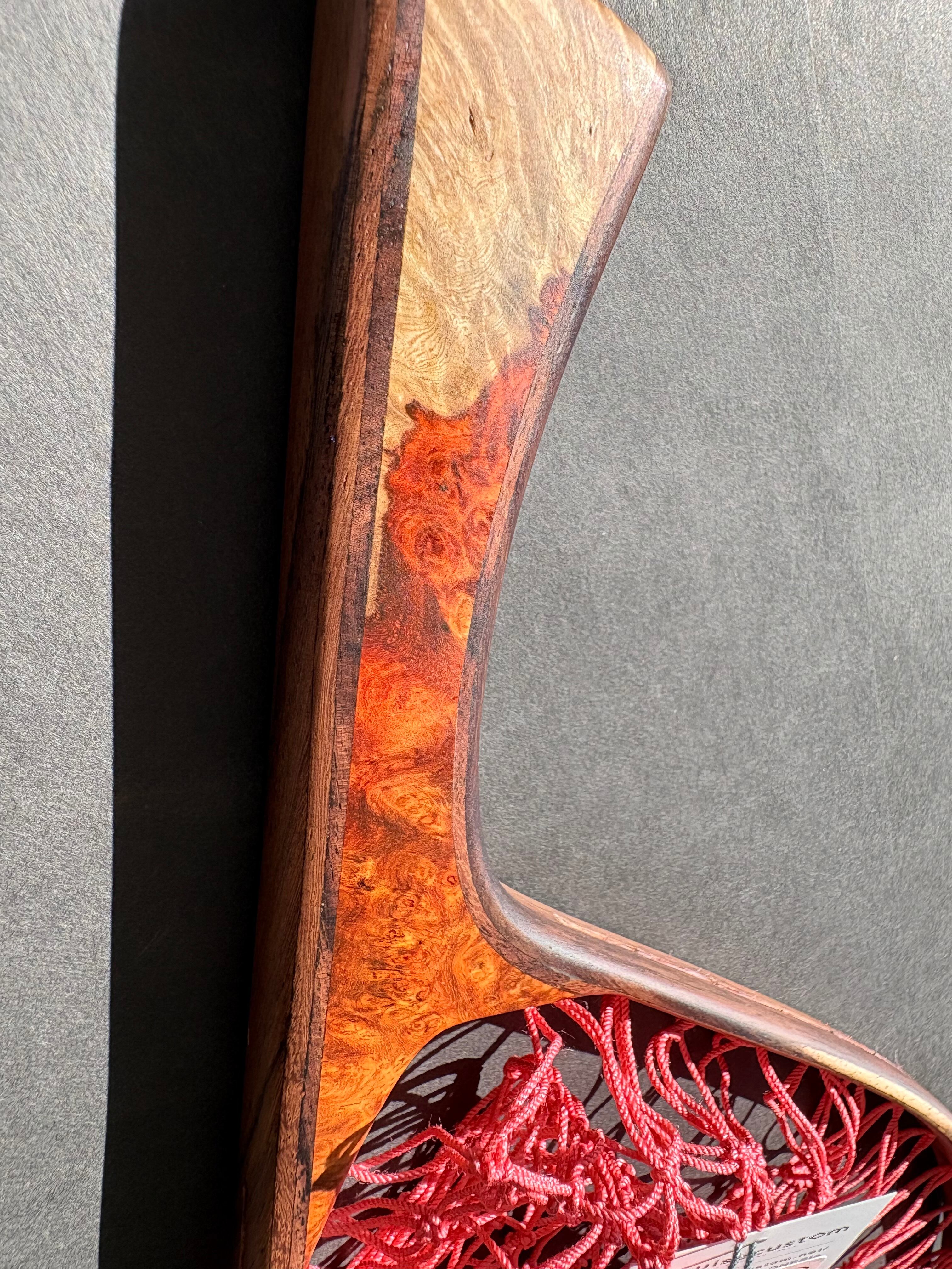 グリップには、希少価値の高い“特上グレード”のアンボイナ花梨瘤材を使用。瘤ならではの複雑で美しい杢が、所有する喜びを引き立てます。