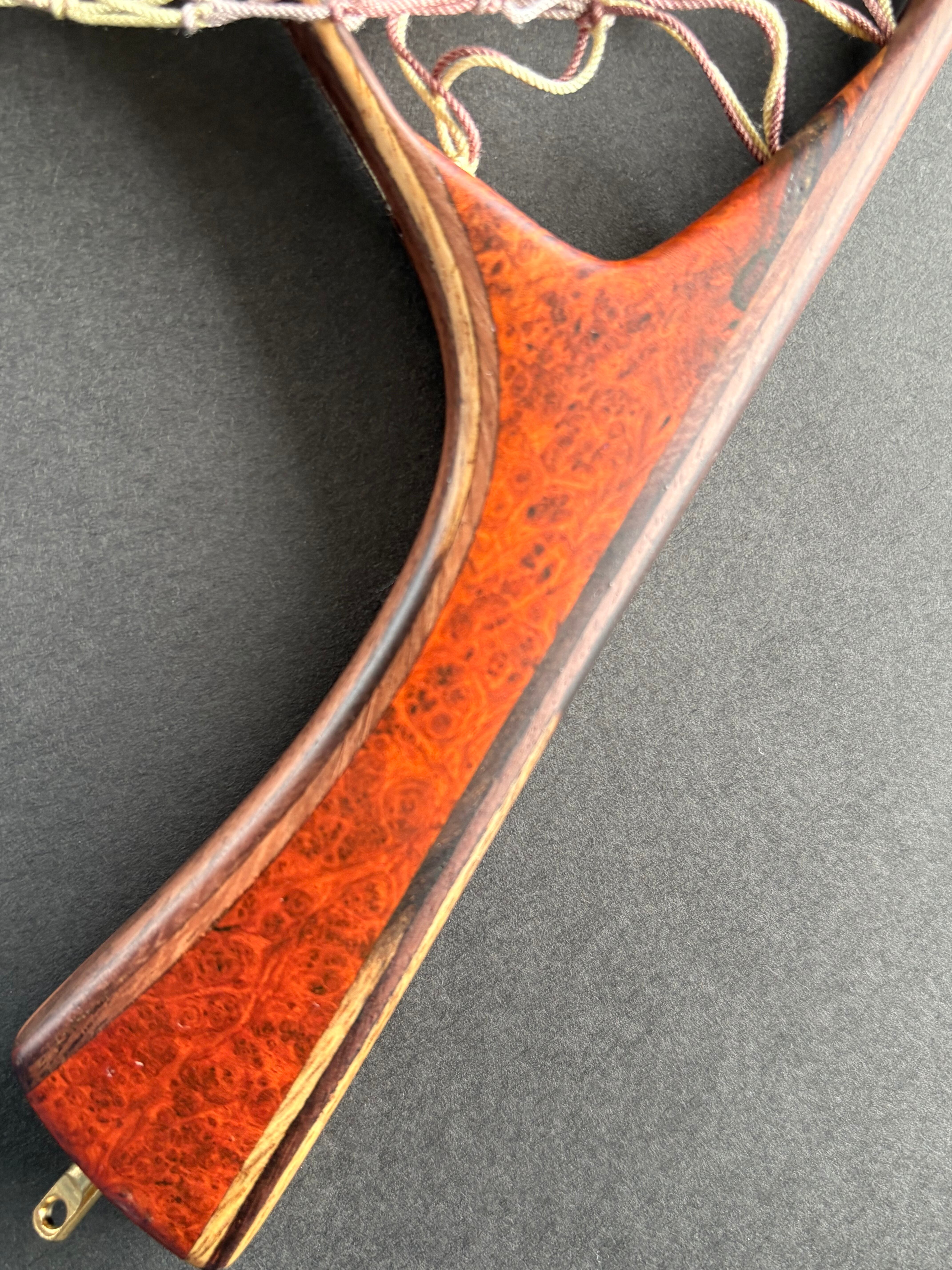 グリップには、希少価値の高い“特上グレード”のアンボイナ花梨瘤材を使用。瘤ならではの複雑で美しい杢が、所有する喜びを引き立てます。