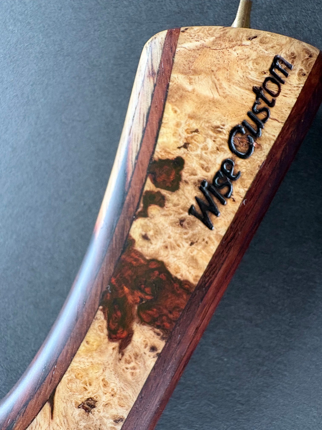グリップには、希少価値の高い“特上グレード”のアンボイナ花梨瘤材を使用。瘤ならではの複雑で美しい杢が、所有する喜びを引き立てます。